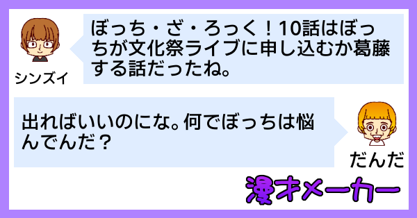 ぼっち・ざ・ろっく!10話はぼっちが文化祭ライブに申し込むか葛藤する話だったね。