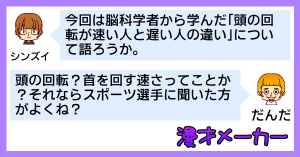 脳科学者から学んだ「頭の回転が速い人と遅い人の違い」を漫才で語る