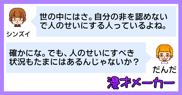 確かにな。でも、人のせいにすべき状況もたまにはあるんじゃないか?