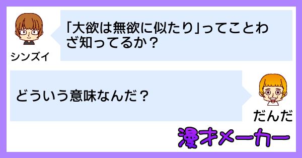 お前だったら「大欲は無欲に似たり」ってどんな感じで使うんだ?