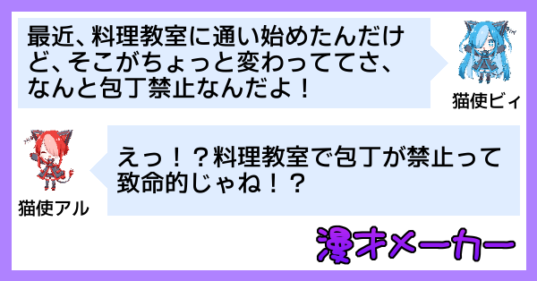最近、料理教室に通い始めたんだけど、そこがちょっと変わっててさ、なんと包丁禁止なんだよ!