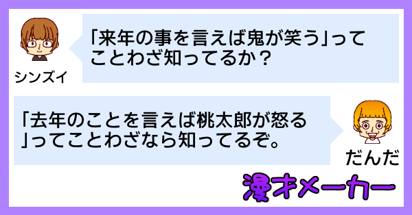 漫才で学ぶ「来年の事を言えば鬼が笑う」の使い方